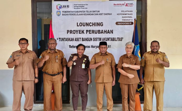 BINTUNI, jurnalpapua – Kepala Badan Pengelolaan dan Keuangan Aset Daerah (BPKAD) Kabupaten Teluk Bintuni, Laras Nuryani SE, melaunching proyek perubahan bertajuk ‘Tuntaskan Aset Bangun Sistem Akuntablitas’, Senin (11/8/2025).