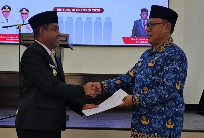 BINTUNI, jurnalpapua – Ida Bagus Putu Suratna secara resmi telah mengantongi surat tugas dari Bupati Teluk Bintuni, Yohanis Manibuy, untuk menjalankan aktivitas sebagai Pelaksana Tugas (Plt) Sekretaris Daerah (Sekda) Kabupaten Teluk Bintuni, terhitung sejak 1 Oktober 2025.