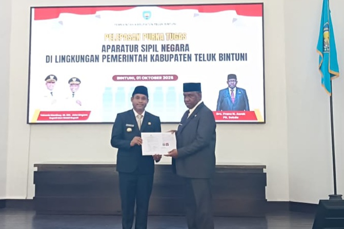 BINTUNI, jurnalpapua – Frans Nikolas Awak memasuki masa purna tugas (pensiun) terhitung mulai 1 Oktober 2025, setelah lima tahun menjabat sebagai Pelaksana Tugas (Plt) Sekretaris Daerah Kabupaten Teluk Bintuni.
