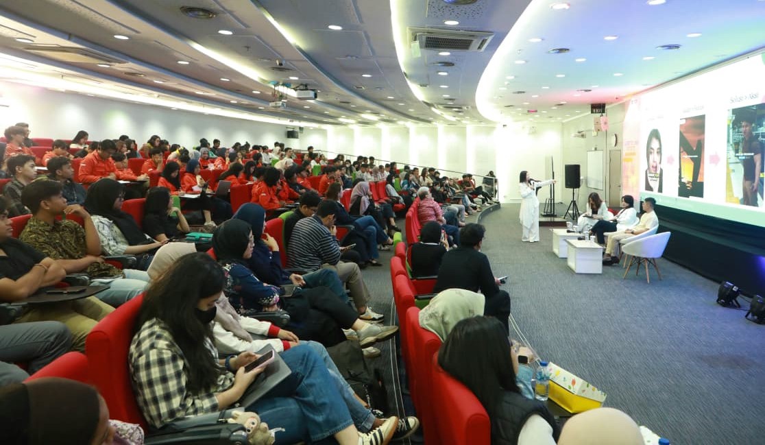 Kegiatan Pertamina Hulu Energi Youth Program: Upstream Force di Universitas Pertamina menghadirkan sesi talkshow dan pemaparan dengan pembicara dari PHE Upstream Champion Theresia Iin Wulandari, Founder Start Your Content Academy Victoria Wong, dan Social Media Manager Kapanlagi Youniverse Eko Setiawan.